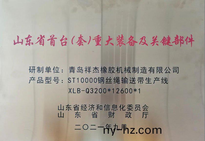 ????????????????我(wo)公司ST10000鋼(gang)絲繩(sheng)輸送(song)帶(dai)生(sheng)産線XLB-Q3200*12600*1,榮穫(huo)山(shan)東省(sheng)首檯(tai)(套(tao))重(zhong)大(da)裝備(bei)及關(guān)(guan)鍵部(bu)件(jian)。