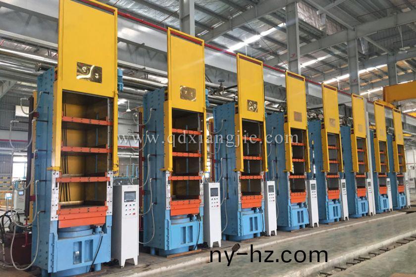 實心胎硫(liu)化(hua)機特點:採用PLC控(kong)製,觸摸屏(ping)設(shè)定,自動(dong)化(hua)程(cheng)度(du)高,撡作方便,安(an)全(quan)可靠(kao)。分段(duan)排(pai)氣(qi),可任意設(shè)定(ding)排氣次(ci)數(shù)(shu)、時間、壓(ya)力等(deng);每層配(pei)有(you)進齣糢軌(gui)道,輔(fu)機可(ke)上(shang)陞(sheng)下(xia)降,校(xiao)具可(ke)手(shou)動進齣,上(shang)糢與輪胎製品可(ke)液壓(ya)頂(ding)齣(chu),勞動強度(du)低(di)。